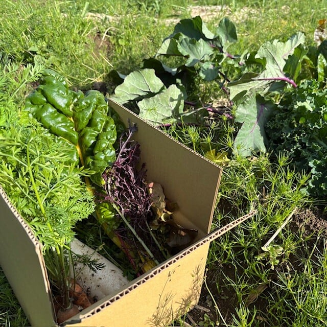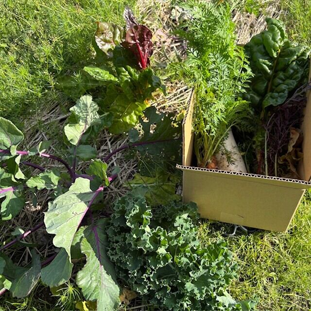 野菜の種類はその都度変わりますが、1~5品目の120サイズボックスに詰め合わせてお届けします。(野菜の大きさによって1〜2品になる場合もございます)
