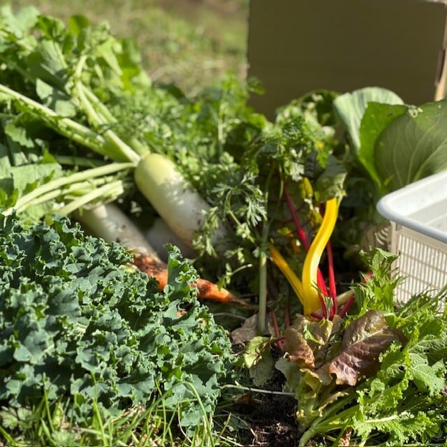 農薬・化学性肥料を使用せずに育ててきた収穫したての旬のお野菜をセットにして、ご自宅にお届けします。