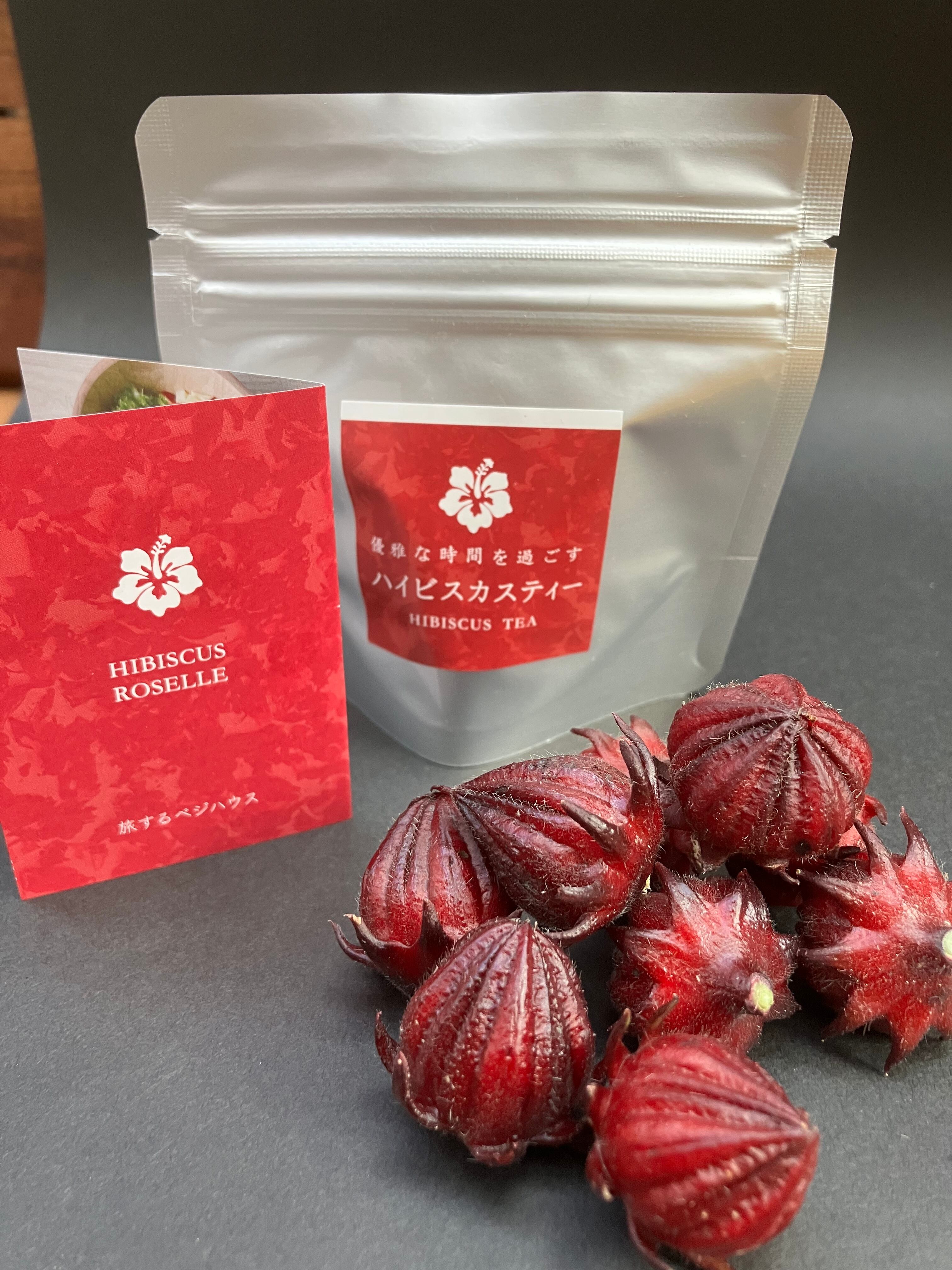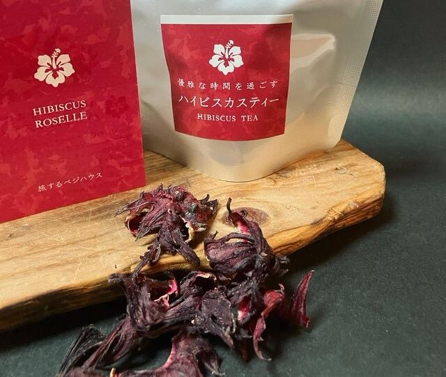 収穫後、ローゼルの種を取り除き、ガクをそのまま乾燥させ5g包装した茶葉です。